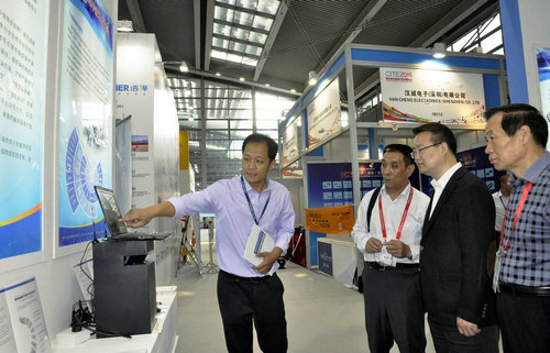 國家工信部電子信息司司長刁石京蒞臨公司展臺(tái)參觀指導(dǎo),詳細(xì)了解企業(yè)及產(chǎn)品應(yīng)用情況,勉勵(lì)企業(yè)將技術(shù)創(chuàng)新深入開展下去。