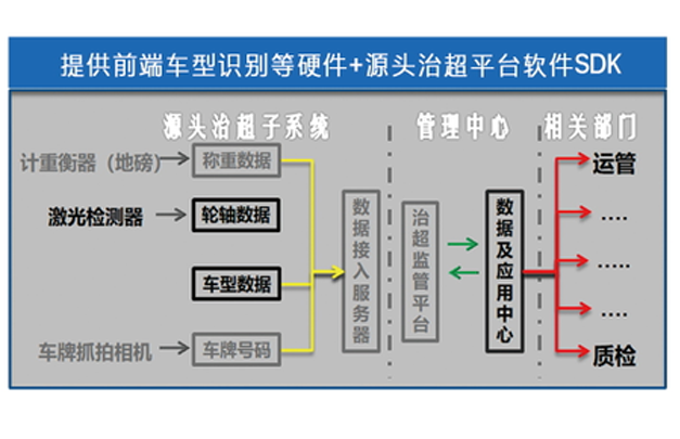系統(tǒng)的核心是基于激光雷達對車輛的長度、寬度、輪軸識別,并和抓拍相機互相配合校難,過磅車輛車型是否改裝,是否存在車輛套牌,“大噸小標”情況,對以上項目進行檢測后,確定車輛是否超載,并將檢測結(jié)果通過LED屏或語音方式進行輸出,同時通過互聯(lián)網(wǎng)將信息上匯聚至互聯(lián)互通云平臺管理軟件中。